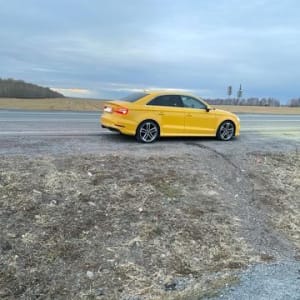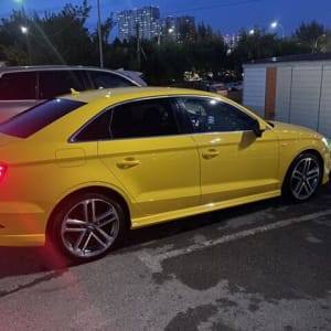 Audi A3 sport, S-LINE внешний и внутренний дизай. Колеса R18 S-LINE. Салон из комбинированной кожи с алькантарой, комфортные большие передние сидения с выдвижной поддержкой для ног, спортивная подвеска с регулируемыми по жесткости амортизаторами. На 18 дисках комфортно и мягко, при этом отменная управляемость.Черный потолок.