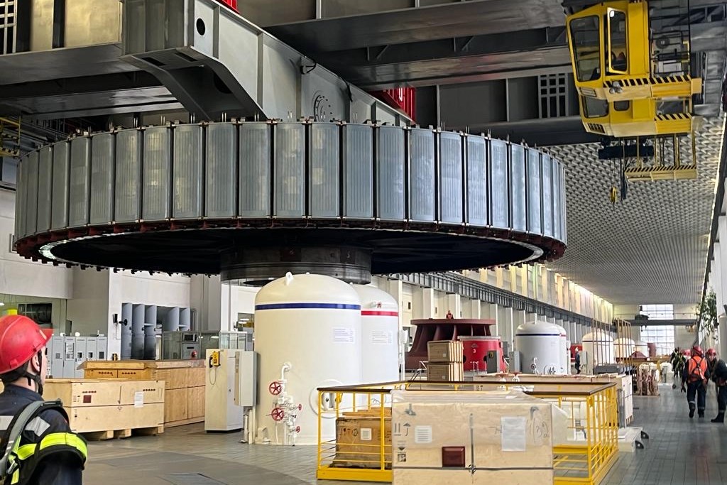 Специалисты при помощи мостового крана установили новое рабочее колесо в спиральную камеру и провели работы по центровке и сборке оборудования. Новое колесо обладает увеличенным коэффициентом полезного действия — конфигурация лопастей позволяет вырабатывать больше энергии при прежнем объеме воды. Вес оборудования составляет 240 тонн, диаметр — 8 м. Также был заменен силовой трансформатор 220 кВ. Новое электрооборудование для мониторинга с современными системами автоматики позволяет контролировать параметры трансформатора и формировать прогнозы его технического состояния в режиме онлайн.