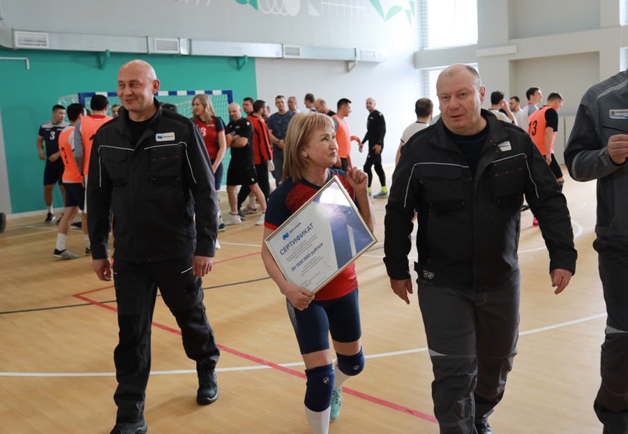 В честь открытия нового спортивного комплекса глава компании передал сертификат на 30 млн рублей для приорбрете6ния спортивного оборудования, инвентаря и экипировки команд.