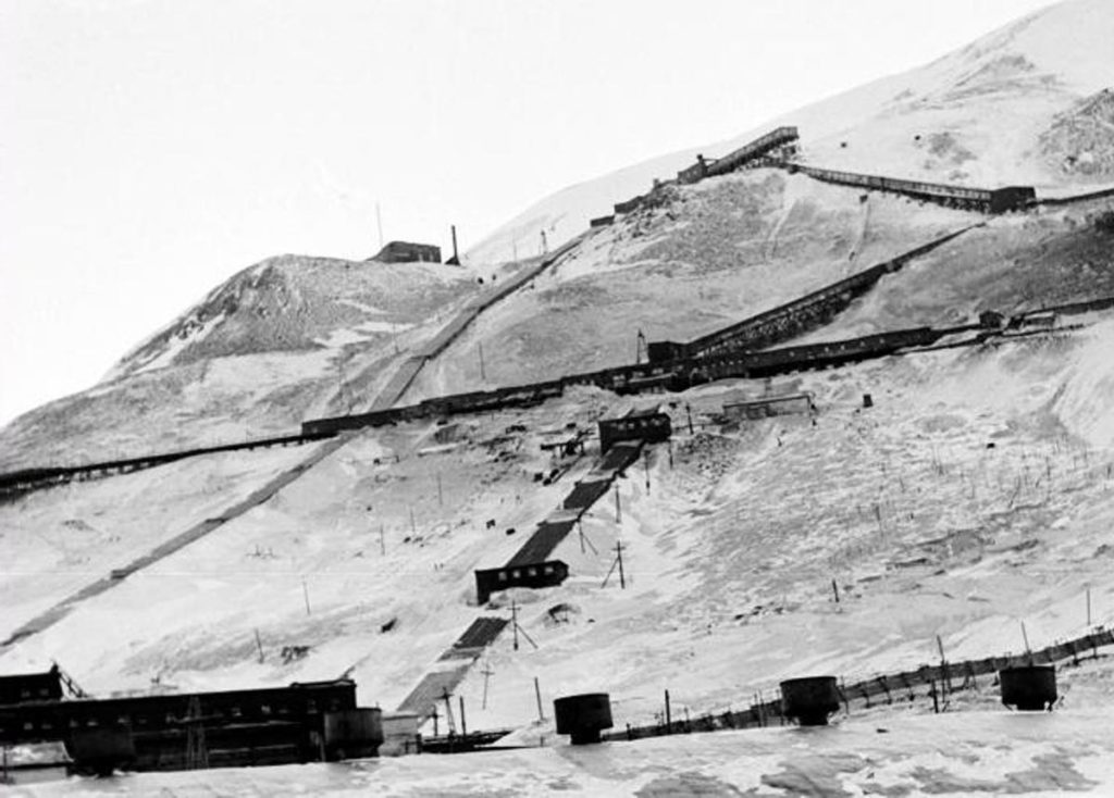 В марте 1940 года началась добыча угля в шахте №14, а летом – в №11. Добыча руды в 1941 году по сравнению с 1939-м возросла в 16 раз. Закладывались новые шахты, встал вопрос о доставке добытого угля к полотну железной дороги , проходившей у подножия горы Шмидта . Возить на машинах стало нерентабельно. В начале 1943 года пришлось по крутому склону на половине высоты Шмидтихи строить полуторакилометровую эстакаду. Путь небольшой, а каких сил потребовал! Не так-то легко доставлять лес на высоту нескольких сот метров вручную. На пронизывающем ветру рыли ямы и ставили эстакаду, по ней проложили рельсовый путь. Побежали проворные вагонетки, уголь из них поступал в сортировку, а оттуда – в железнодорожные вагоны трассы Норильск – Дудинка …»