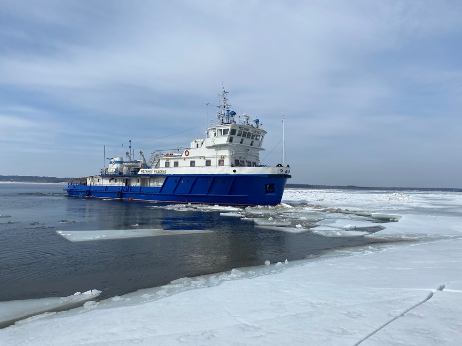 «В районе Подтесово лед на Енисее не идет всем руслом от берега до берега, освобождается узкая полоса посередине, порядка 150-200 м, а ширина реки здесь около километра. И нам приходится убирать ледовый припай порядка 300 м с одной стороны и 400 м – с другой», - рассказал капитан-наставник Евгений Антонов.