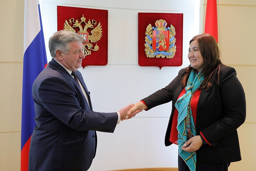 КРАСНОЯРСКИЙ КРАЙ, /НИА-КРАСНОЯРСК/. Заместитель Губернатора края Валерий Семенов провел встречу с советником-посланником Посольства Киргизской Республики в РФ Айдай Омуркуловой.