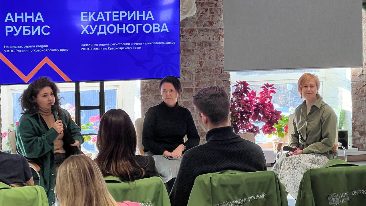 В качестве спикеров для участия в диалоге были приглашены начальник отдела регистрации и учета налогоплательщиков Екатерина Худоногова и начальник отдела кадров Анна Рубис .