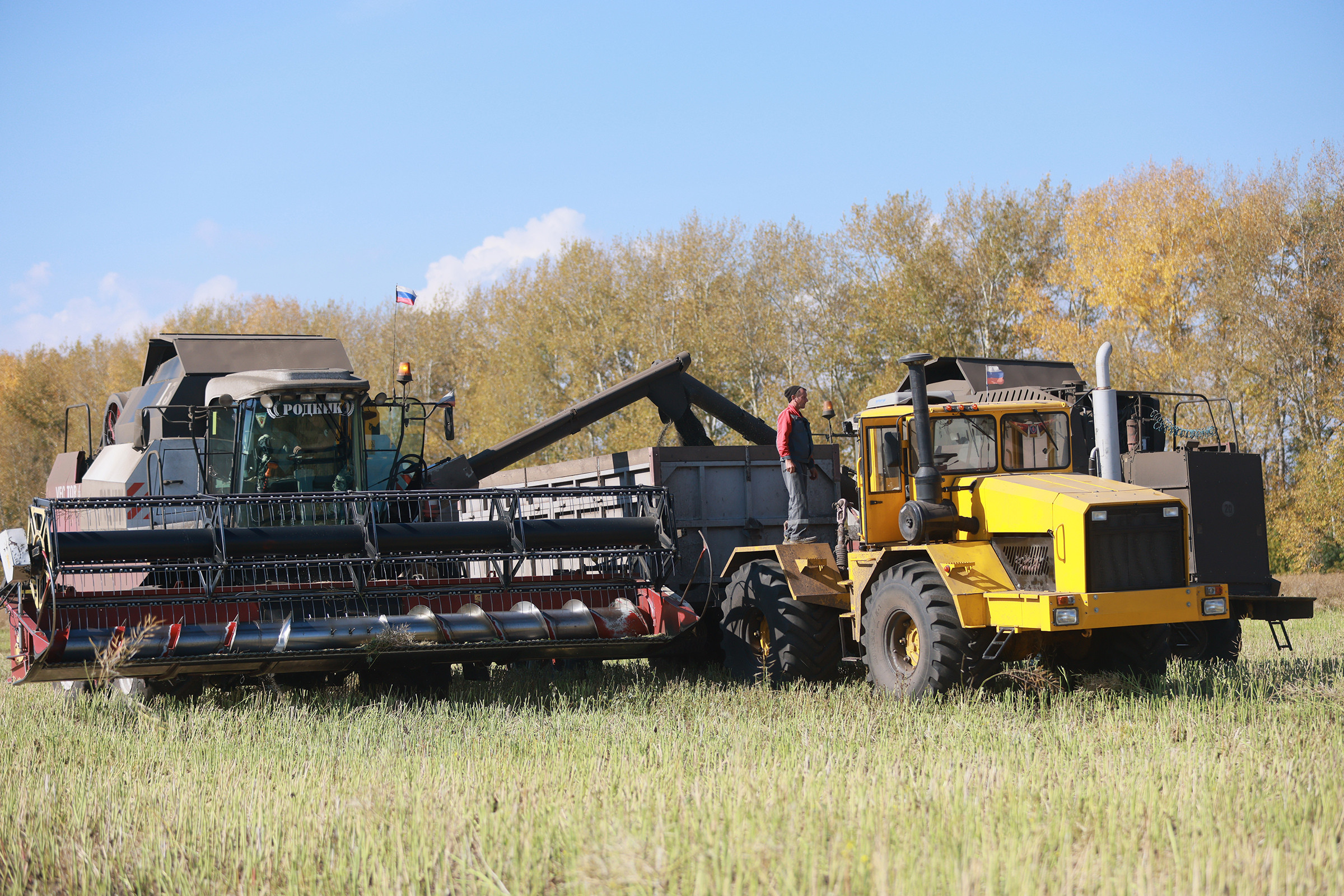 В крае обмолочено около 642 тысяч гектаров под зерновыми и зернобобовыми культурами, или 67,4 процента площадей от плана. Собрано 1 миллион 890 тысяч тонн зерна при средней урожайности 29,5 центнеров с гектара. Это традиционно лучший результат в Сибирском федеральном округе. При этом хозяйства Балахтинского и Новосёловского районов опережают среднекраевые показатели: в первом убрано более 80 процентов, а во втором -- свыше 85 процентов посевных площадей.