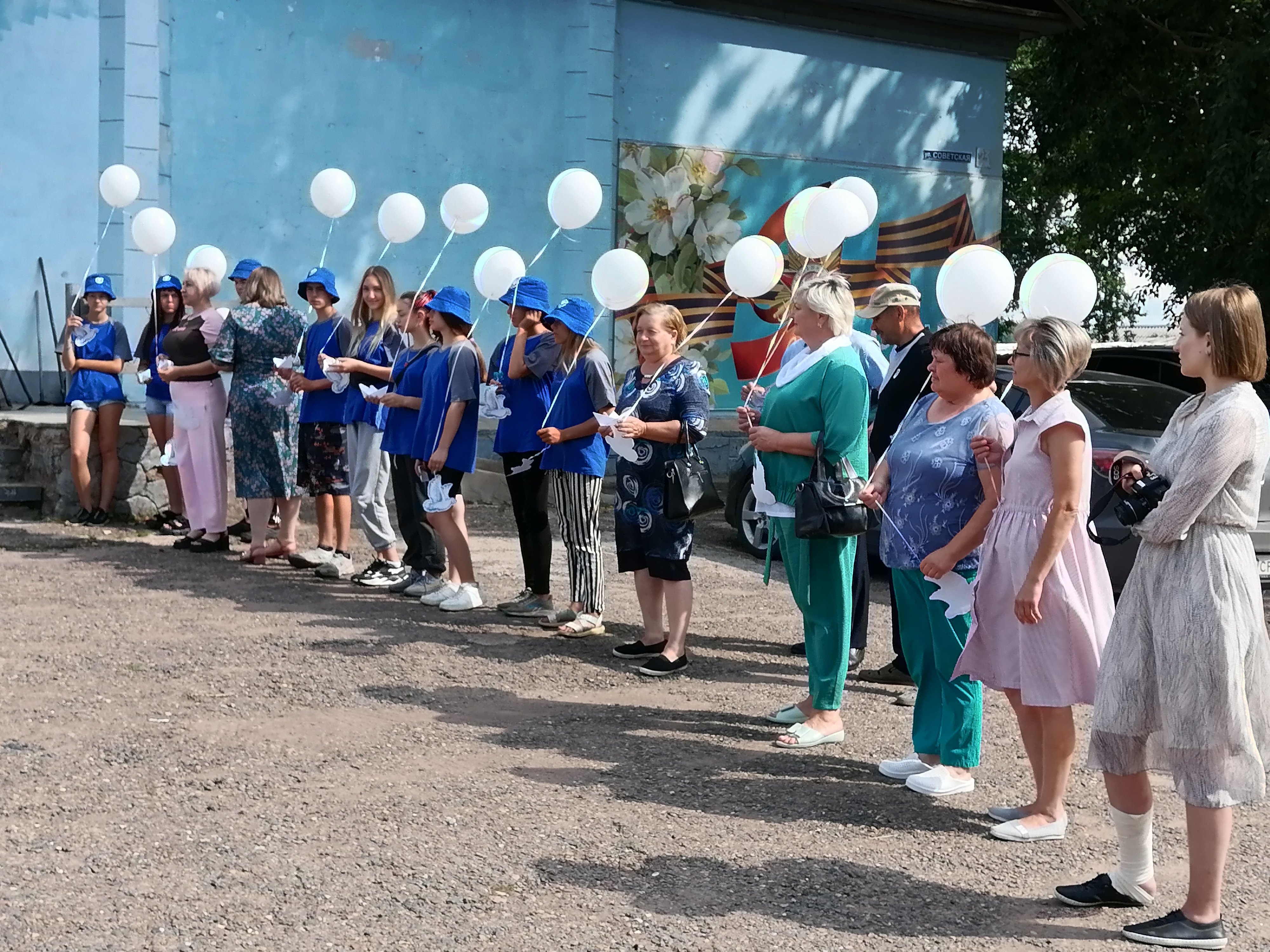 Ребята и взрослые запускают в небо белые воздушные шары в память о погибших юных жителях Донбасса.