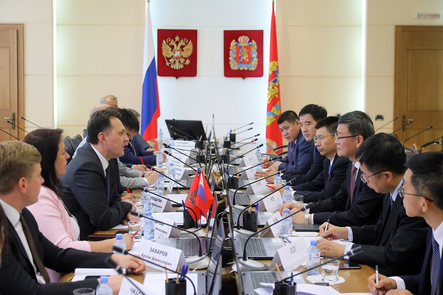КРАСНОЯРСКИЙ КРАЙ, /НИА-КРАСНОЯРСК/. Руководители подразделений краевого Правительства, Администрации Губернатора и Представительства МИД России встретились с делегацией из Автономного района Внутренняя Монголия (КНР).