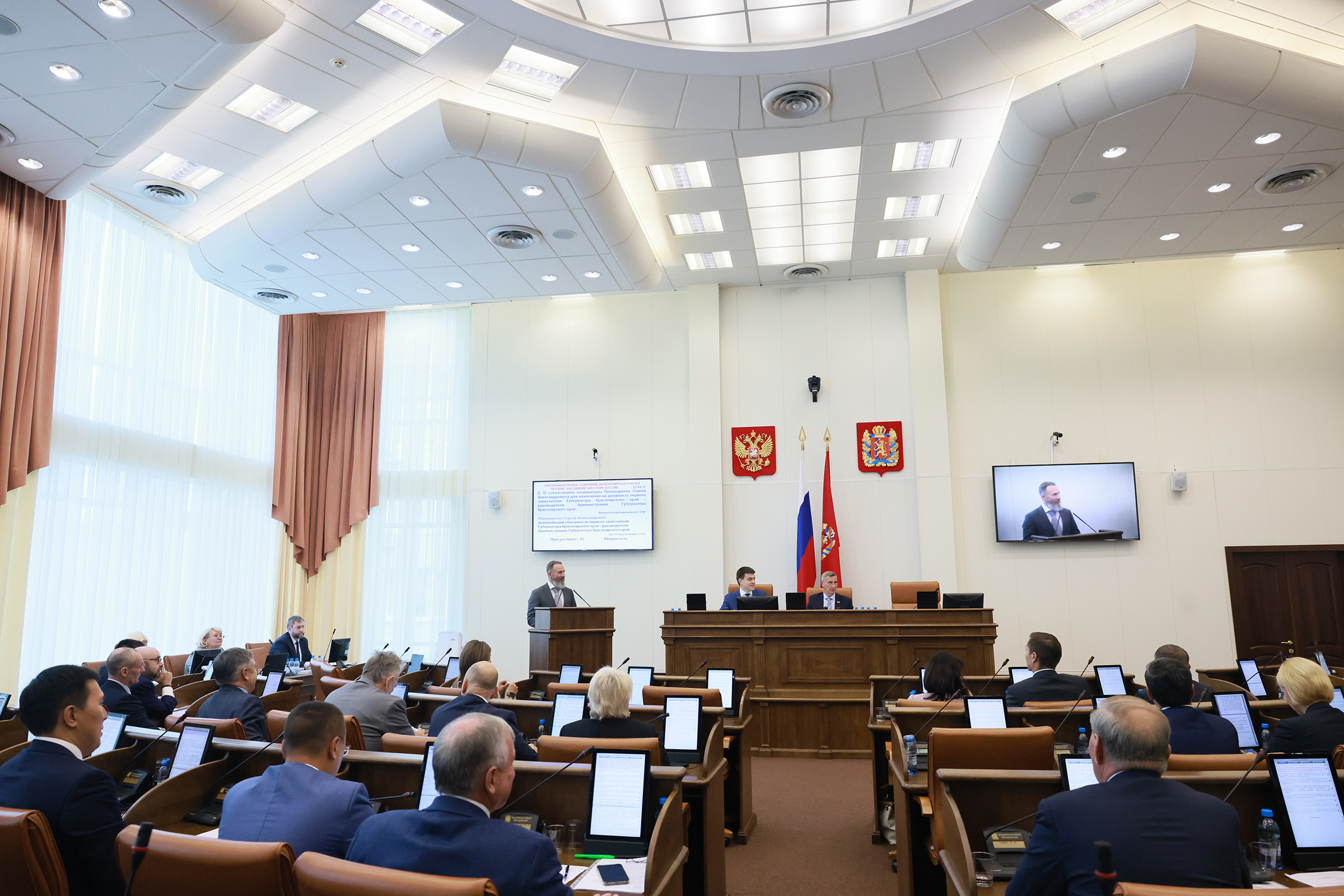 Депутаты Законодательного Собрания Красноярского края на первом заседании VI сессии согласовали назначение кандидатов, предложенных главой региона Михаилом Котюковым,
