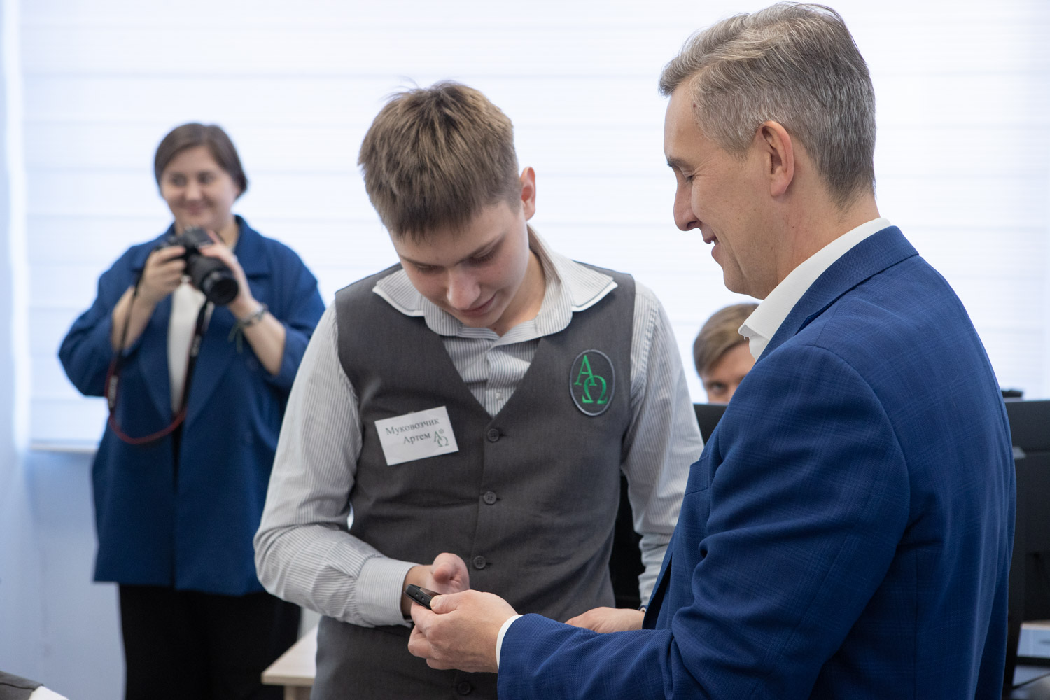 Спикер Заксобрания пообщался с учениками 10-11 классов, они презентовали ему свои проекты. Например, Артем Муковозчик создал приложение, которое позволяет через телефон измерить пульс, а Глеб Михайлов — систему, которая помогает автоматизировать запись пациентов, она уже внедрена в одной из медицинских клиник. После неформального общения ребята показали гостям, как они живут, а также столовую, помещения для спортивных секций.
