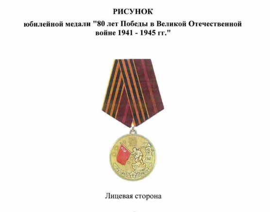 Юбилейную медаль «80 лет Победы в Великой Отечественной войне 1941-1945 годов» вручат ветеранам войны – в том числе иностранцам, партизанам, труженикам тыла, жителям блокадного Ленинграда, осажденного Севастополя и Сталинграда, а также бывшим несовершеннолетним узникам концлагерей.
