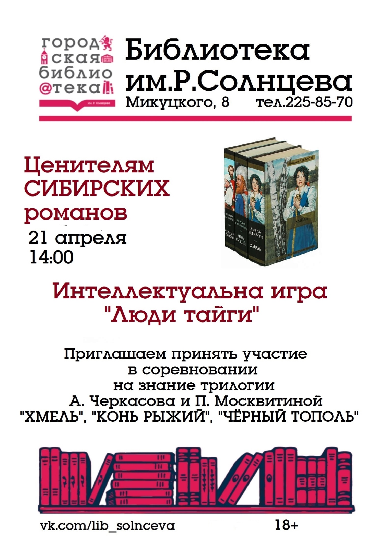 21 АПРЕЛЯ 14:00 ИГРА "Люди тайги" По книгам Алексея Черкасова и Полины Москвитиной.
