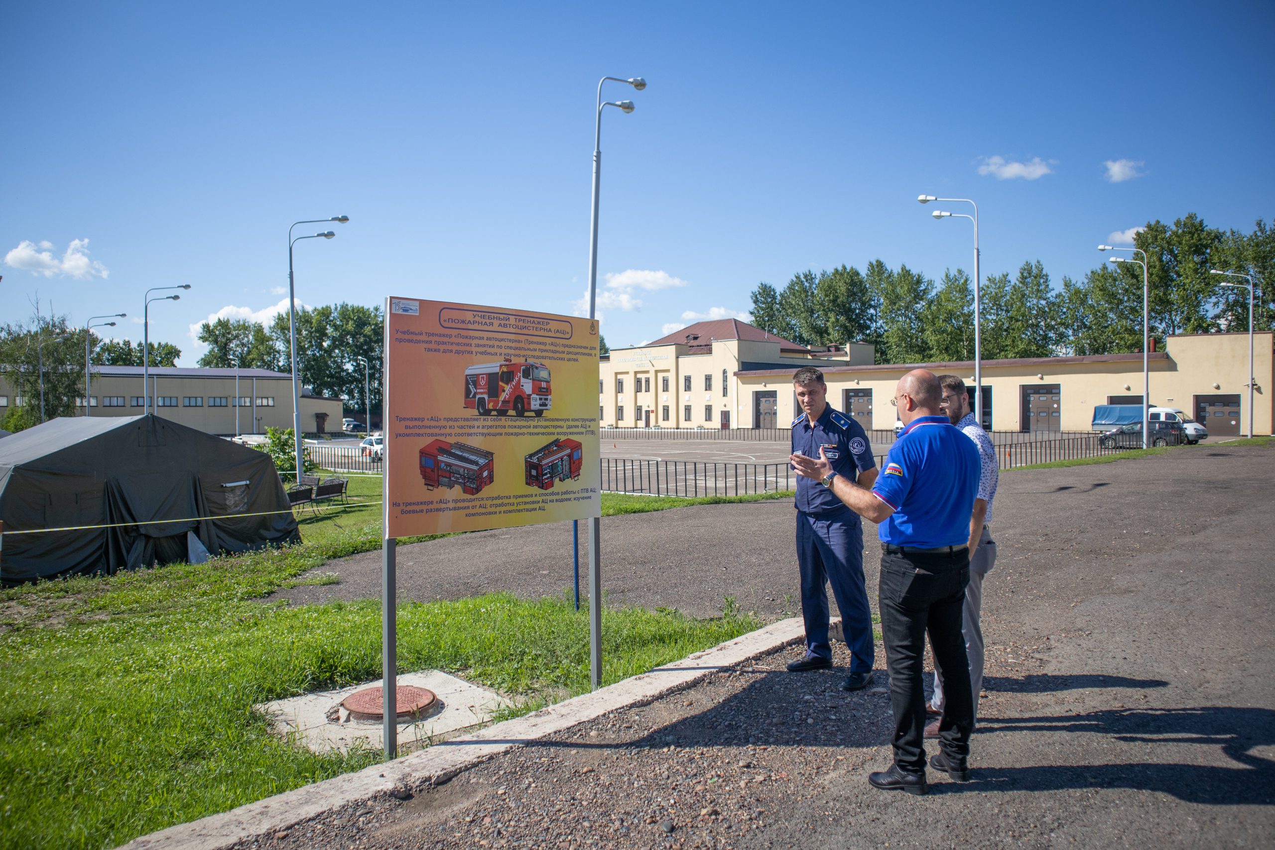 Для почетных гостей была проведена экскурсия по учебному заведению с осмотром условий проживания и быта обучающихся, организацией образовательного процесса, осмотрели тренажерные комплексы, используемые для подготовки будущих пожарных-спасателей, учебные классы, аудитории и лаборатории для изучения специальных дисциплин, спортивные объекты, в частности бассейн и ледовую арену.