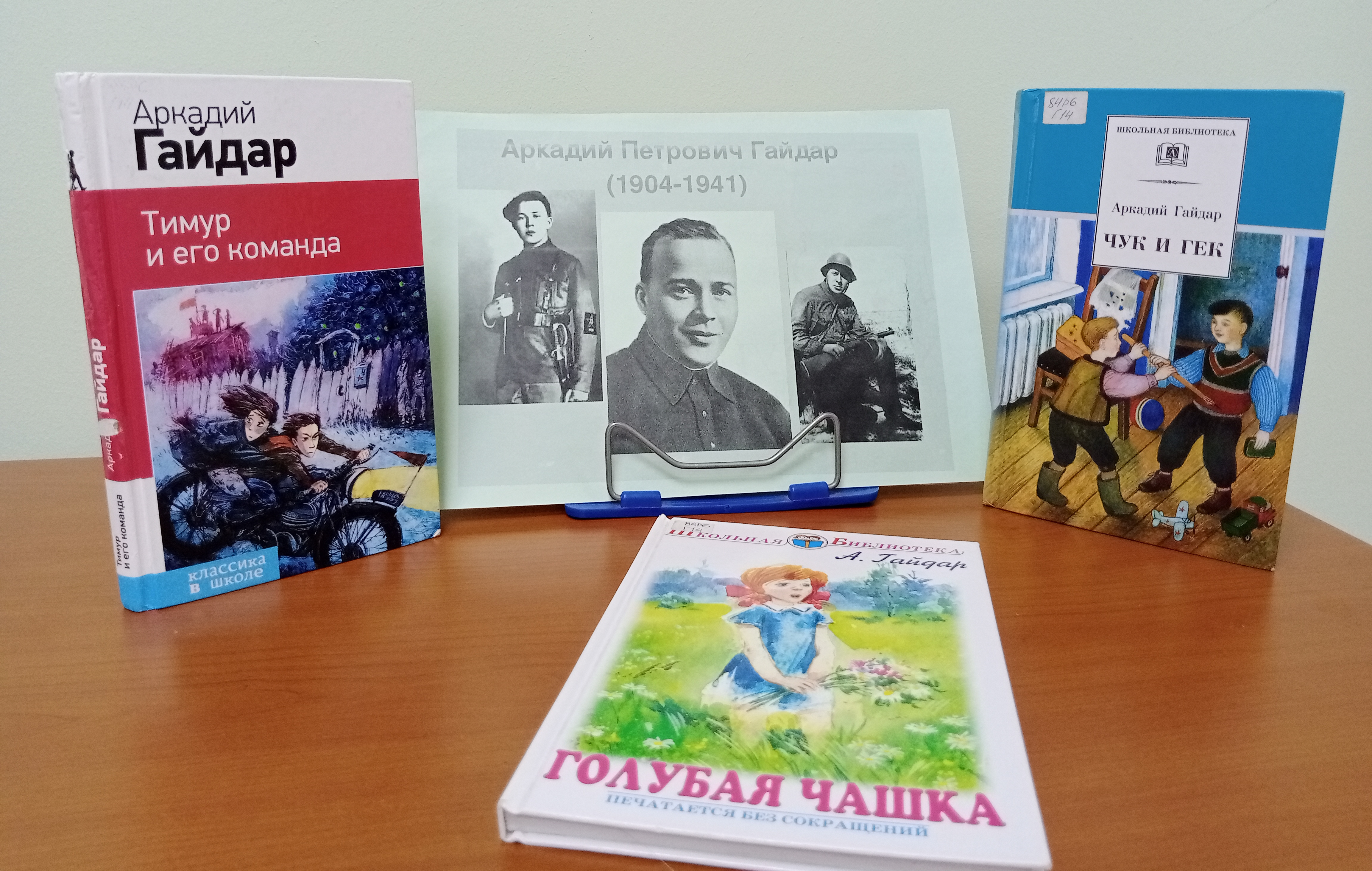 Для детей была показана слайдовая презентация о детстве и творческом пути Аркадия Петровича Гайдара. Представлены книги писателя с краткой аннотацией. Но особый интерес дети остановили на книге "Горячий камень". Почему дедушка не хотел разбивать камень, и конечно ответ нашли в книге! Поразмышляли: Чему учат книги Аркия Гайдара!? - Уметь радоваться простым вещам, как лучик солнца (Голубая чашка),делать добрые дела(Тимур и его команда),и беречь ближних! Всем добра и мира.