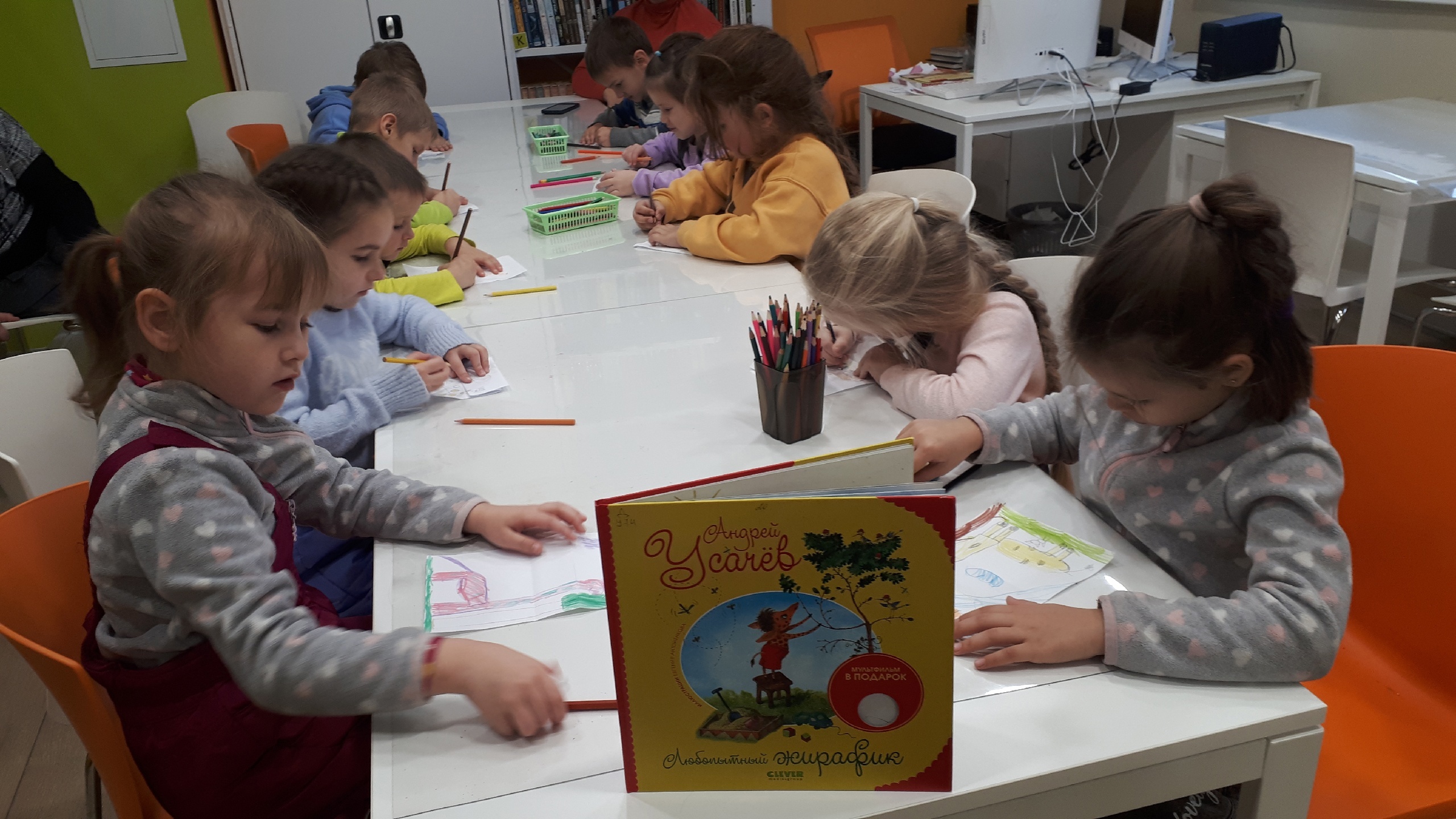 Почему опасно плавать по реке на крокодилах? Точно! Потому что "задохлешься! А сколько бантиков можно завязать из одного обычного удава? Может 38? Как попугаев? А можно ли дать и сдержать честно-честное жирафье слово? Сколько же интересного можно узнать, прочитав сказку Андрея Усачева "Любопытный жирафик". Малыши из 169 и 265 детских садов не только узнали новое о жирафах, пусть даже сказочных, но и создали свою уникальную иллюстрацию, благодаря которой можно легко рассказать историю жирафика маме, папе, бабушкам, дедушкам. А читала для ребят сказку ученица 5 класса МАОУ Гимназия №4