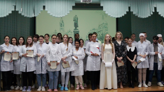 Заведующие отделений присоединились к поздравлениям и вручили грамоты лучшим группам и кураторам по итогам успеваемости первого семестра 2022-2023 г. Благодарственные письма от Регионального штаба волонтеры-медики за активную добровольческую деятельность студентам вручила председатель студенческого совета Хвощевская Мария.