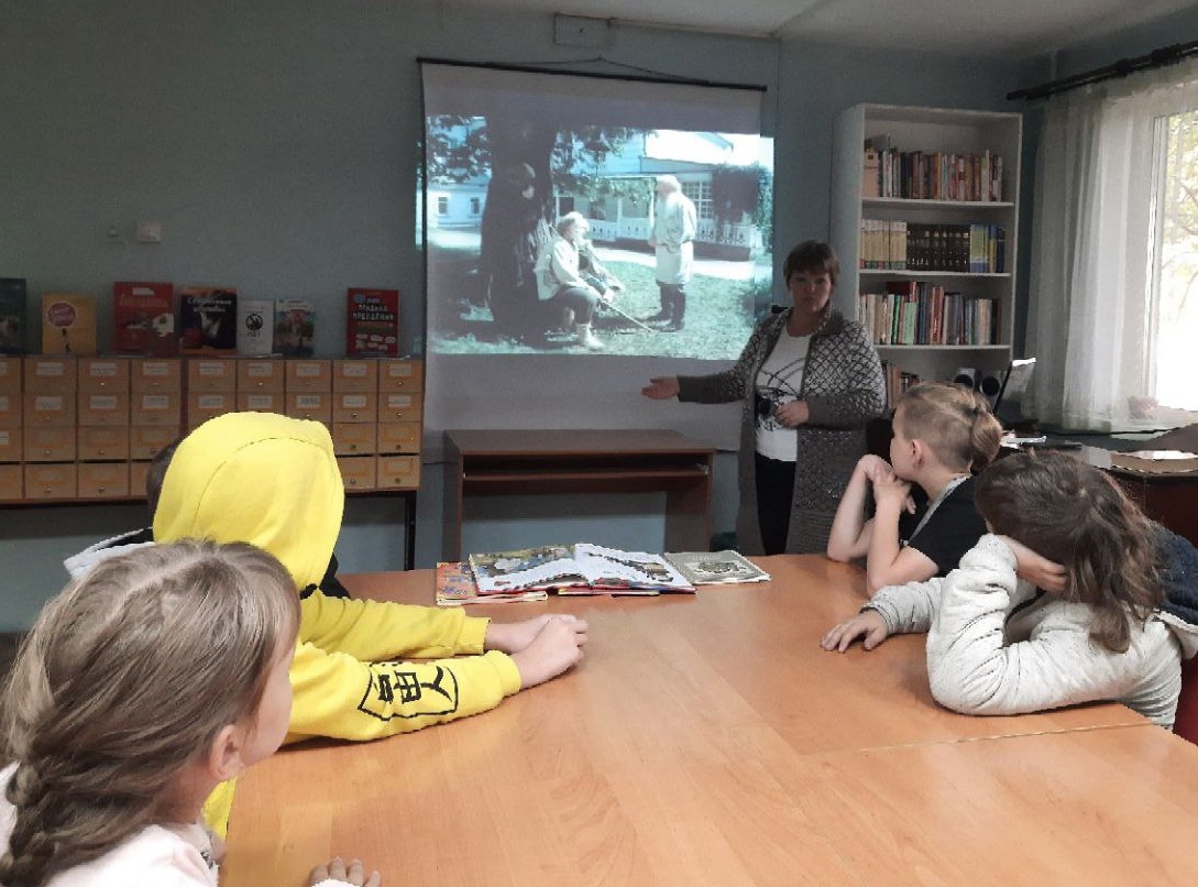 Во время встречи с ребятами мы обсудили время, в которое жил писатель. Для более наглядного представления посмотрели отрывок из художественного фильма "Лев Толстой".