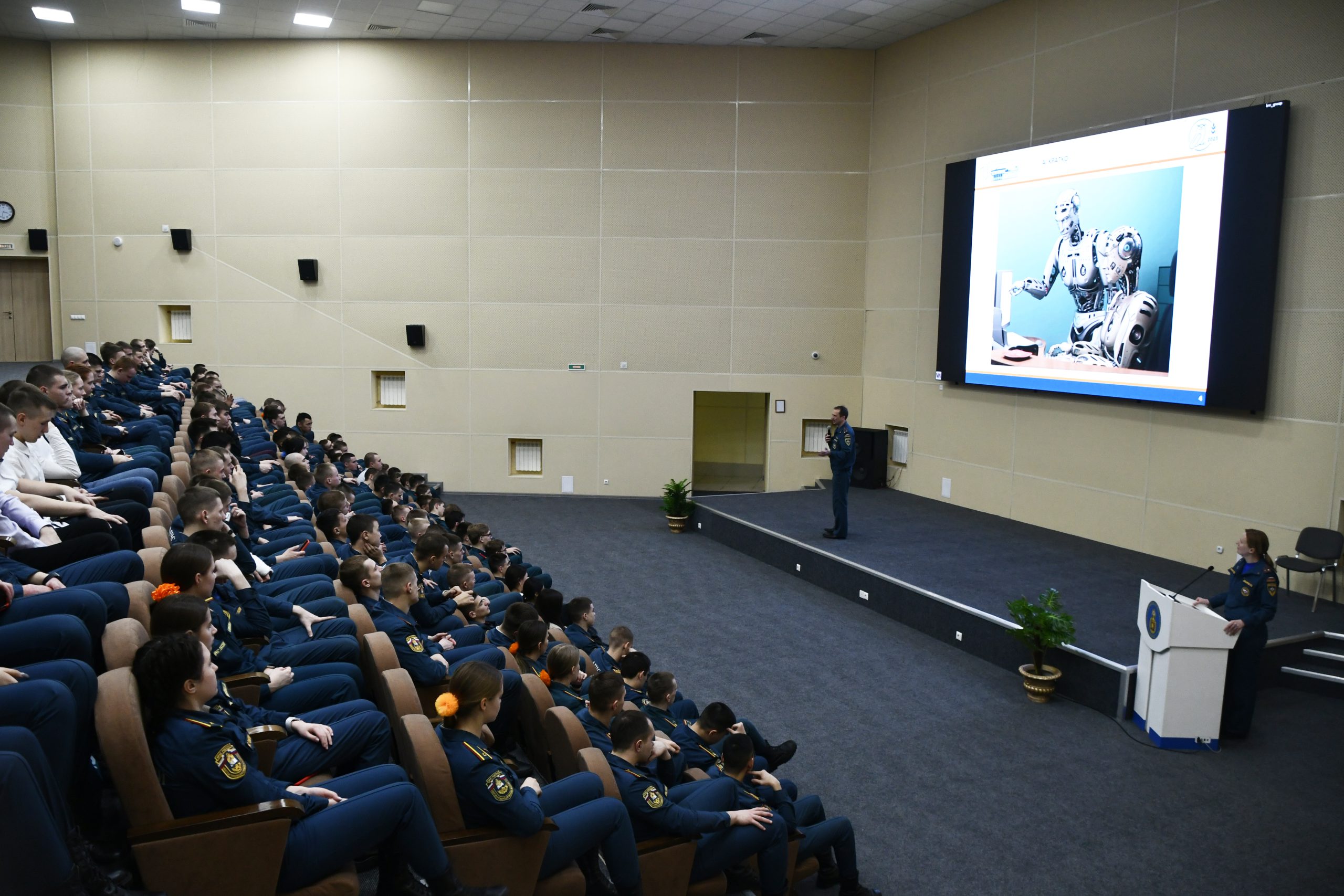 Заместитель начальника отдела информационных технологий и компьютерного моделирования Олег Малютин представил курсантам, студентам академии и учащимся кадетского корпуса доклад на тему «Технологии искусственного интеллекта: настоящее и будущее». Речь шла о передовых достижениях связанных с искусственным интеллектом, этапах развития, о применении систем в обеспечении пожарной и техносферной безопасности.