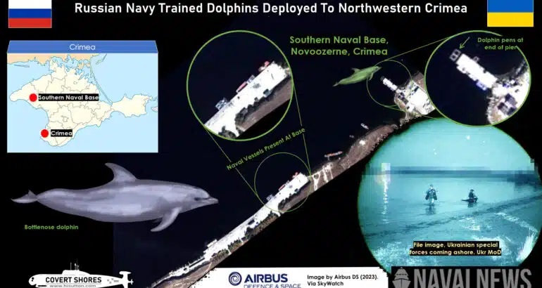 Naval News со ссылкой на представителей британского флота и военных аналитиков заявляет, что в последнее время дельфины также были замечены в поселке Новоозерное на северо-западе Крыма. Военные эксперты думают, что эти действия российской армии могли быть обусловлены усилением диверсионной активности ВСУ у берегов полуострова.