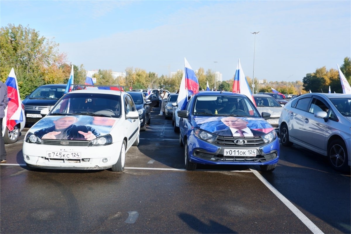 В Красноярске 7 октября в честь дня рождения президента страны состоялся торжественный автопробег «Команда Путина».