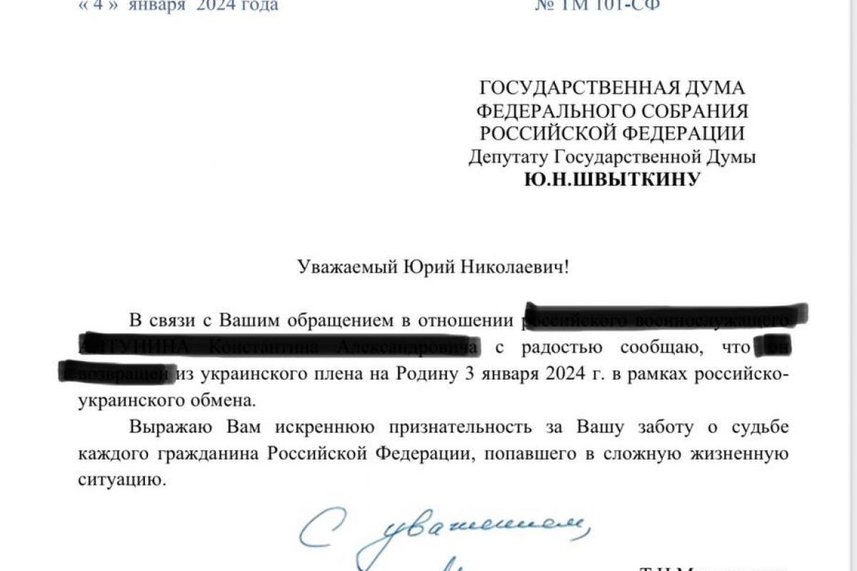 Военнослужащих из Красноярского края вернули из украинского плена. Об этом сообщил заместитель председателя комитета по обороне Государственной Думы РФ, координатор партийного проекта «Своих не бросаем» Юрий Швыткин.