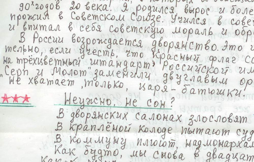 Я родился, вырос и более 50 лет прожил в СССР. Учился в советской школе и впитал в себя советскую мораль и образ жизни. В России возрождается дворянство. Это и неудивительно, если учесть, что красный флаг СССР поменяли на "трёхцветный штандарт" Российской империи, а серп и молот заменили двуглавым орлом. Не хватает только царя-батюшки.