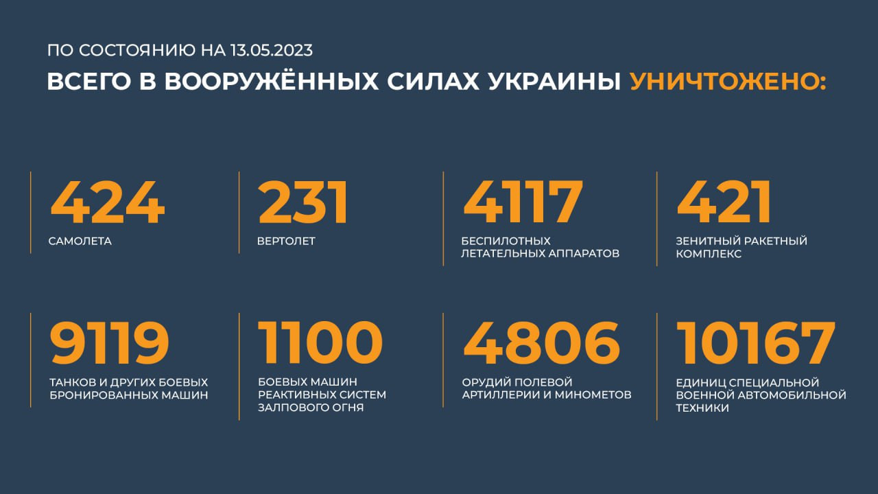 Сводка Минобороны РФ о ходе специальной военной операции на 13 мая 2023 года