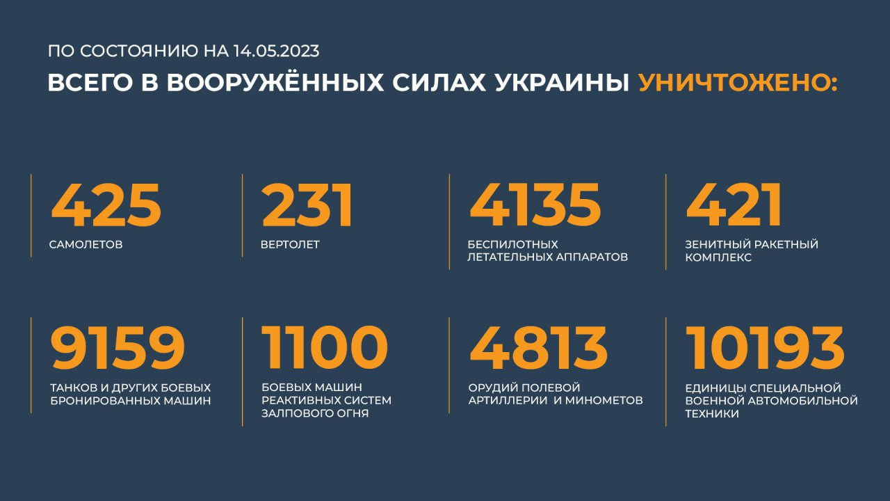 Сводка Минобороны РФ о ходе специальной военной операции на 14 мая 2023 года