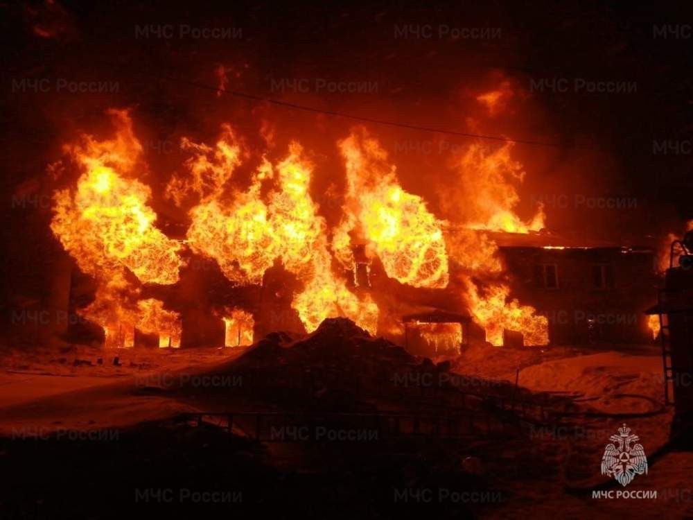 Вечером в субботу, в 20 часов 20 минут, произошёл пожар в 2-этажном брусовом 18-квартирном жилом доме в селе Туруханск.