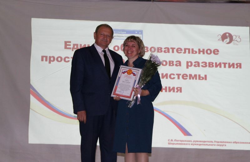 1. Александр Викторович Бах вручает Почетную грамоту Ларисе Геннадьевне Шащенко, учителю Березовской школы;