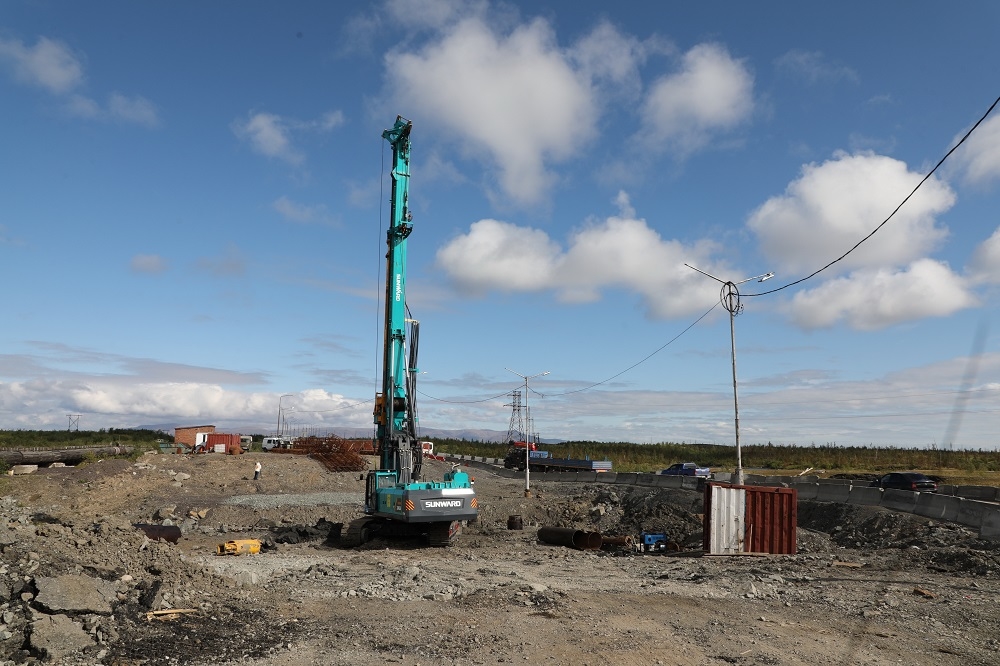 На объекте работа идёт полным ходом. Рабочие уже демонтировали старое мостовое сооружение, установили опоры освещения объездной дороги и уже приступили к устройству свайного основания фундамента опоры на левом берегу. Всего здесь будет установлено 28 свай, по 14 штук с каждой стороны, глубиной до 42 метров. Рабочие уже пробурили одну скважину до отметки несущего грунта (более 44 метров), ещё три находятся в работе.