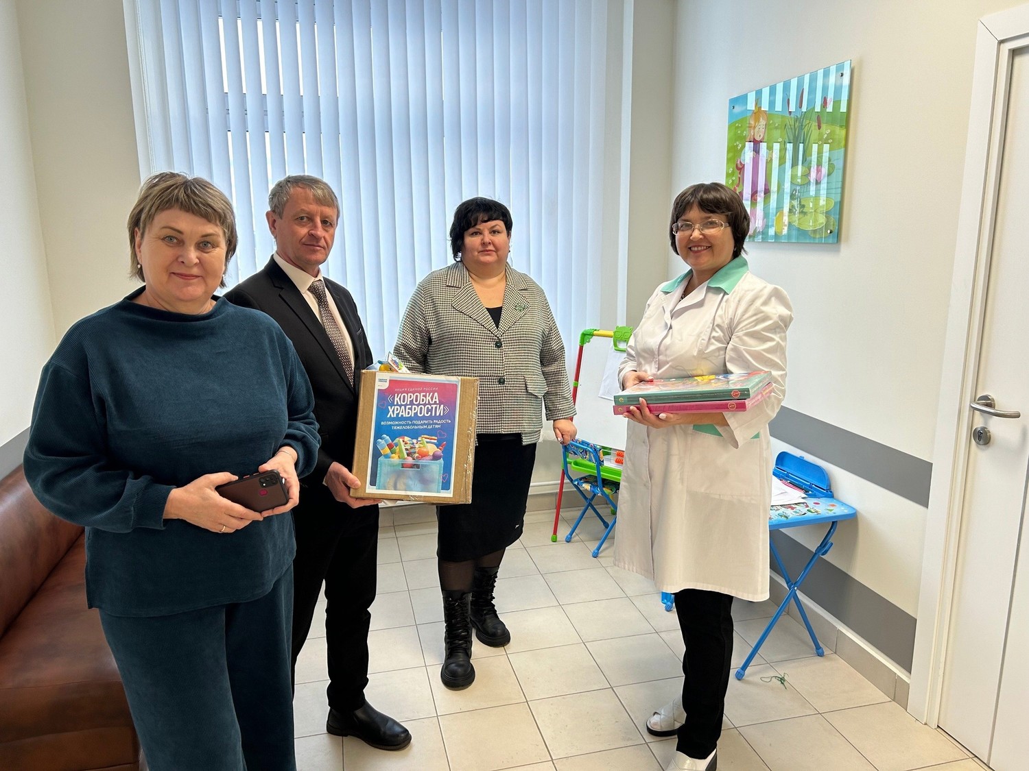 Напомню, что «Коробка храбрости» - это Всероссийская благотворительная акция, которую запустила партия «Единая Россия». Она направлена на поддержку детей, проходящих длительное лечение или сложные медицинские процедуры в учреждениях здравоохранения и хосписах.