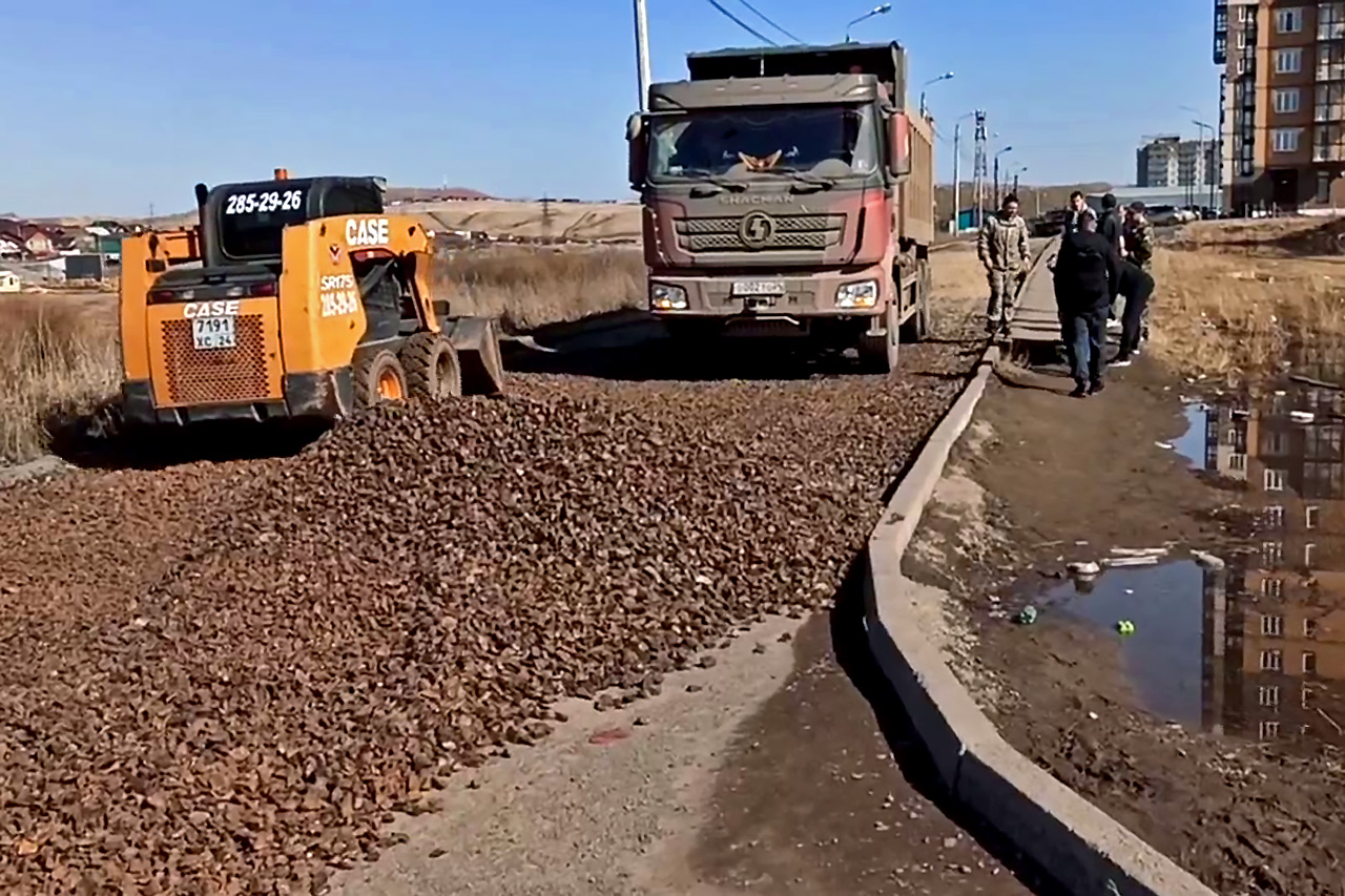 Не дождавшись решения проблемы от мэрии Красноярска, жители ул. Норильской и Гроссовцев сами заказали самовалы со щебнем для заделки ям на дороге к их домам