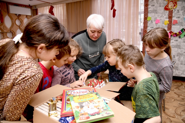 Сладкие угощения и книжки — сказки Корнея Чуковского и басни Ивана Крылова — для детей накануне привез Евгений Громов, руководитель делегации Красноярского края в городе Свердловске и Свердловском районе.