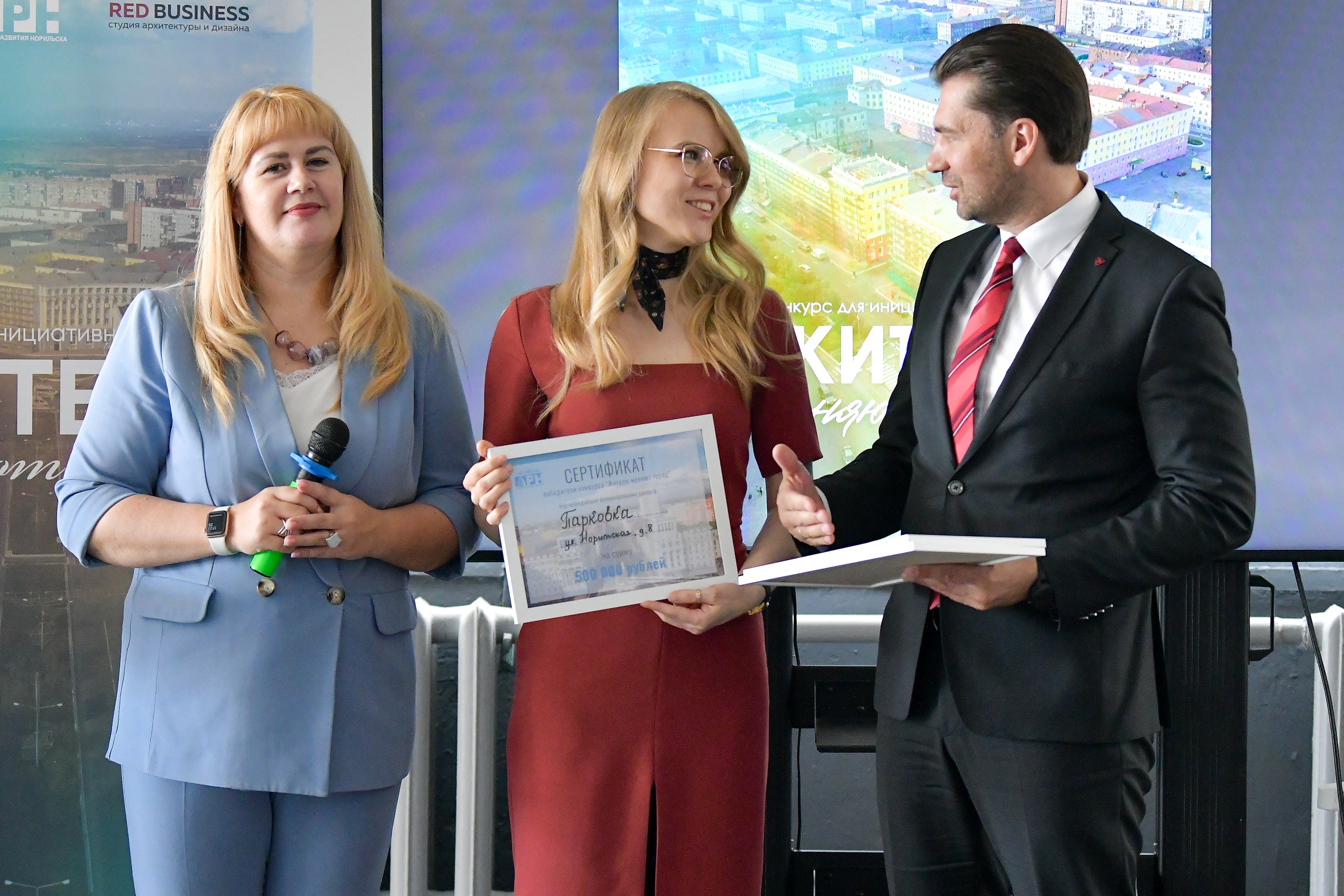 За понравившиеся идеи благоустройства голосовали и гости финального этапа конкурса «Жители меняют город». Приз зрительских симпатий получила команда проекта «Заполярные аллеи», выступающая за продолжение благоустройства сквера на улице Пушкина. Партнер конкурса студия архитектуры и дизайна «Рэд-бизнес» подарила команде «Двор, который мы заслужили» сертификат на разработку авторского мурала «Северные сказки».