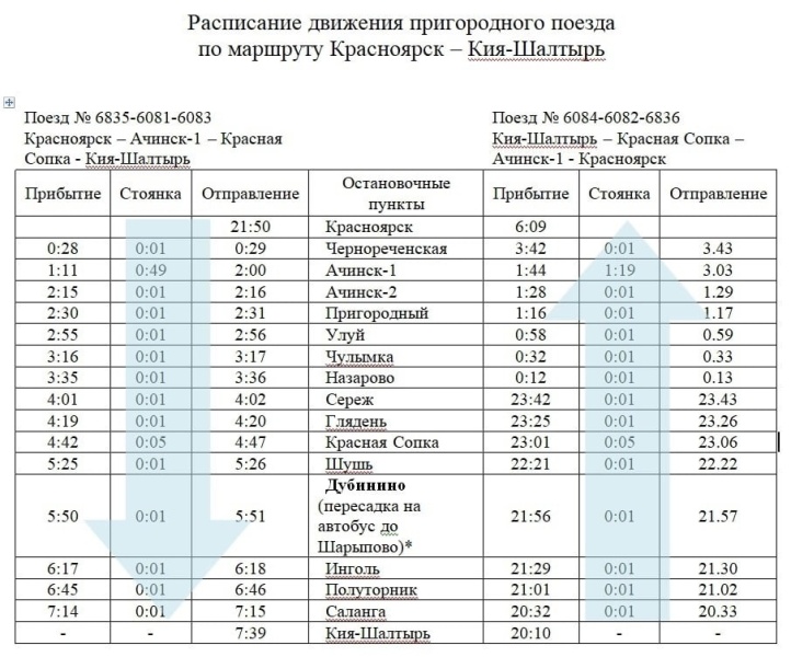 Расписании поезда Красноярск - Кия-Шалтырь (Белогорск).