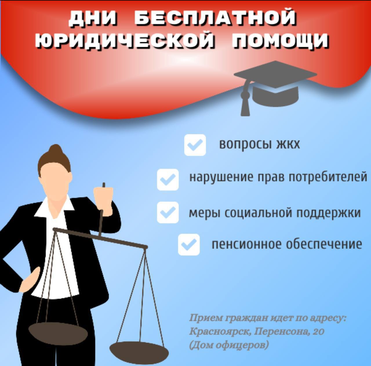 20 марта, с 10.00 до 15.00 по адресу: Перенсона, 20 (Дом офицеров) пройдет прием граждан со специалистом Службы по вопросам в сфере жилищно-коммунального хозяйства.