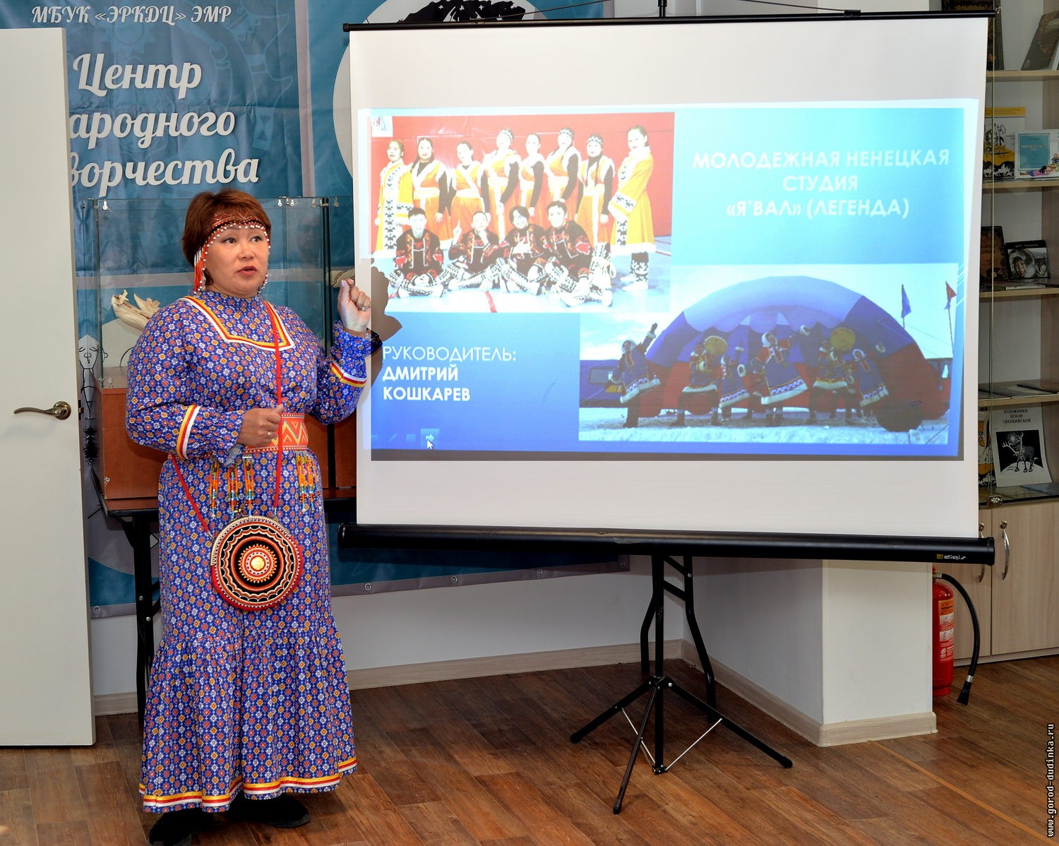 Седьмого июня для работников культуры Эвенкийского района Евгения Бети провела презентацию о деятельности городского Центра народного творчества, направлениях клубных формирований и опыте участия учреждения в грантовых проектах.