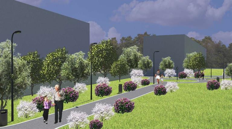 В следующем году здесь появятся тротуары, газон и уличное освещение. В рамках озеленения высадят спирею и сирень. Также будут установлены арт-объекты. Старое бетонное ограждение демонтируют.