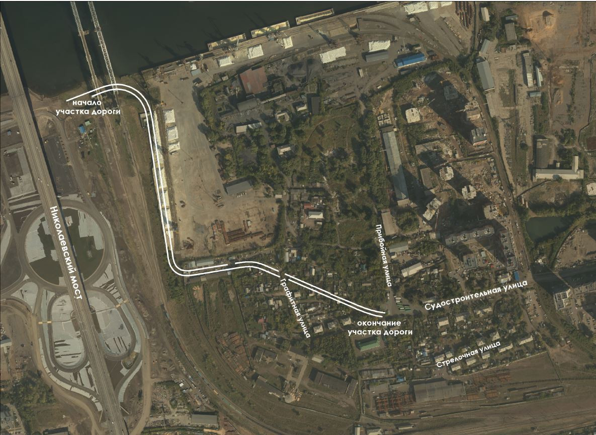 Напомним, что развязка пройдёт от дома №21 на Судостроительной по улице Графитной на северо-запад до Николаевского моста. Двухполосная дорога будет иметь проезжую часть шириной 7 метров, 2-метровые тротуары, остановку и регулируемый железнодорожный переезд. Сдать объект изначально планировалось в октябре 2023 года.