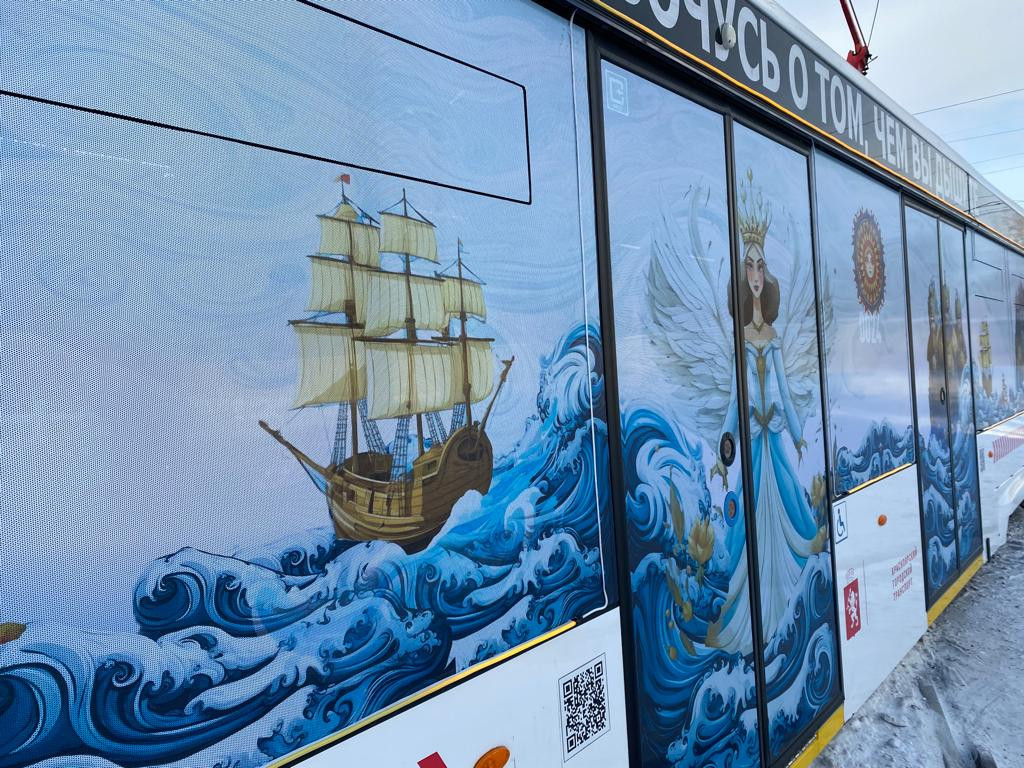 Праздничный трамвай вышел на линию сегодня. А завтра в городе появятся 3 новогодних троллейбуса. Их борта украшают изображения ступы с Бабой Ягой, Кощея и избушки на курьих ножках. Внутри скоро установят фотозону с волшебным дубом и Котом Учёным. Фигуры будут плоскими, чтобы не мешать пассажирам.