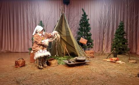 В сельском Доме культуры ребята с интересом слушали истории Валентины Сутлиной. Валентина Владимировна поделилась с детьми яркими воспоминаниями о своем детстве, о жизни в чуме, а также рассказала о разнообразии национальных блюд. Погрузиться в атмосферу прошлого помогло тематическое оформление сцены и национальный костюм героини вечера.