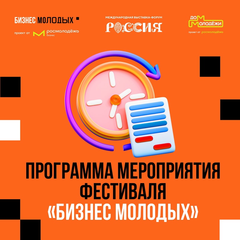 Всероссийский фестиваль молодежного предпринимательства в рамках Международной выставки-форума «Россия» пройдет в период с 18 мая по 26 мая 2024 года.