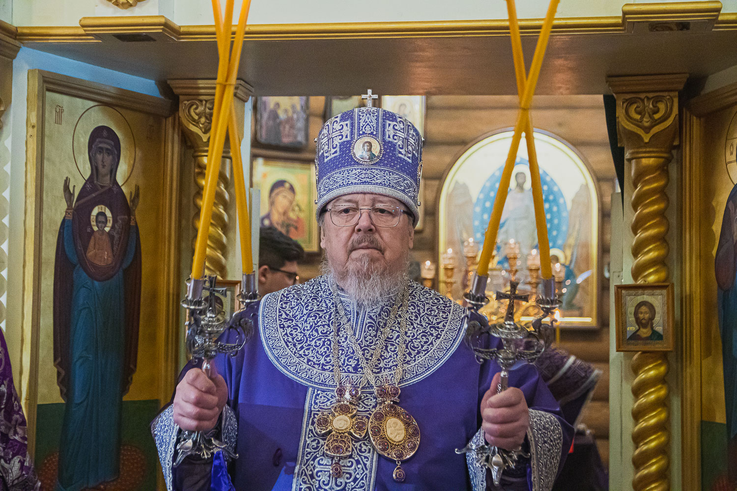 Его Высокопреосвященству сослужили: руководитель административного секретариата Красноярской епархии, настоятель Покровского кафедрального собора Красноярска митрофорный протоиерей Владимир Дорош; секретарь Красноярской епархии, благочинный церквей Левобережного округа, наместник красноярского Успенского мужского монастыря игумен Иннокентий (Нилов); заведующий канцелярией Красноярской епархии, настоятель храма святого Иоанна Предтечи протоиерей Николай Ши-кэ-мин; благочинный больничных храмов Красноярска, настоятель красноярских храмов апостола Андрея Первозванного и великомученика Димитрия Солунского иерей Виталий Вальтер; настоятель красноярского храма святого благоверного князя Александра Невского протоиерей Павел Богинский.