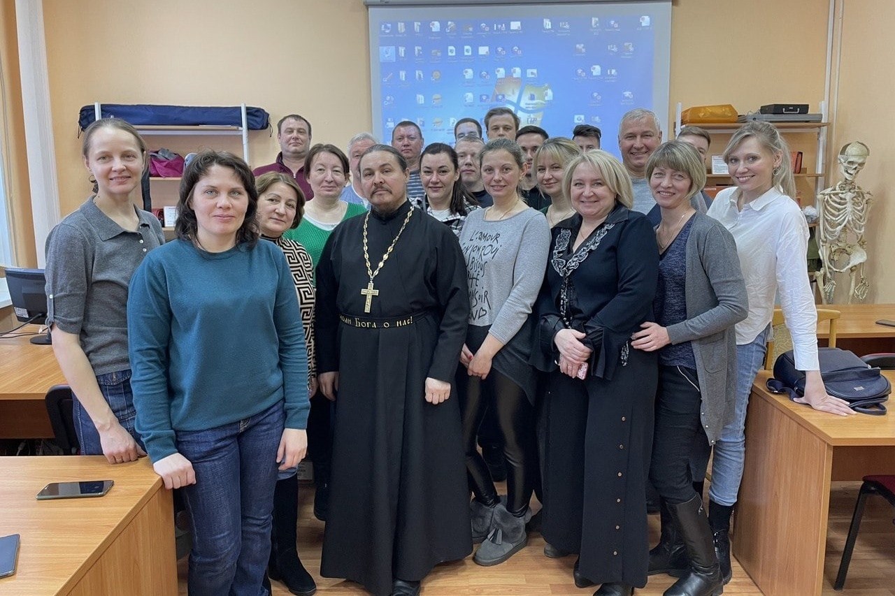 1 февраля настоятель храма святителя Луки при КрасГМУ имени проф. В.Ф. Войно-Ясенецкого в городе Красноярске протоиерей Анатолий Обухов провёл занятие для слушателей курсов по оказанию первой помощи.