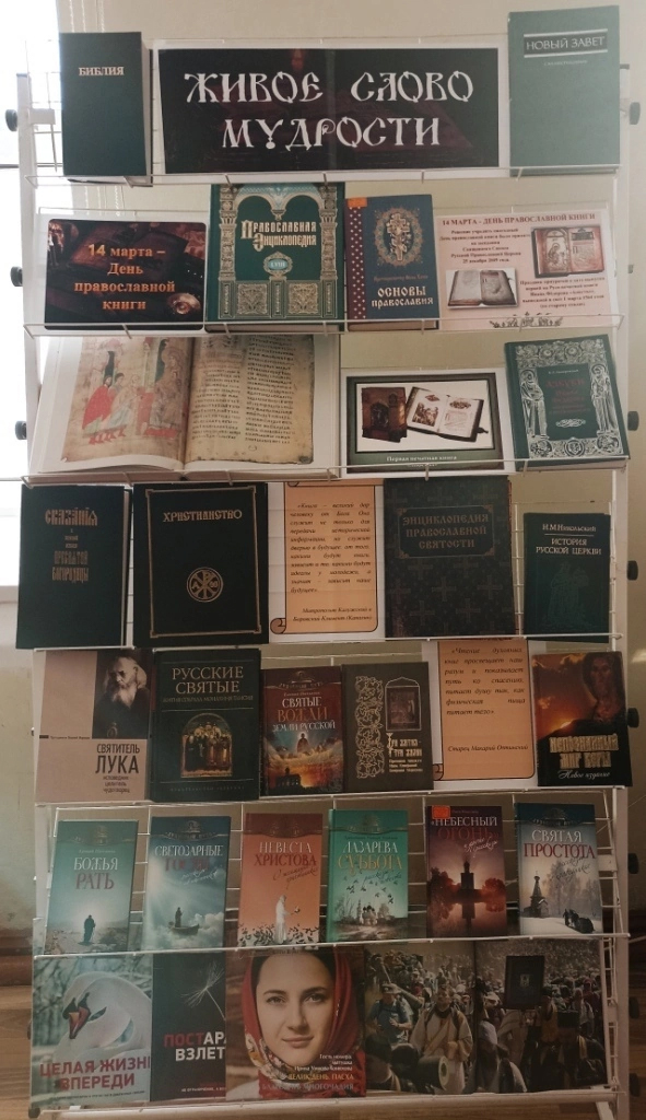 14 марта 2023 года, в рамках проведения мероприятий, посвященных Дню православной книги, в читальном зале Центральной районной библиотеки села Туруханск состоялось открытие выставки «Живое слово мудрости».