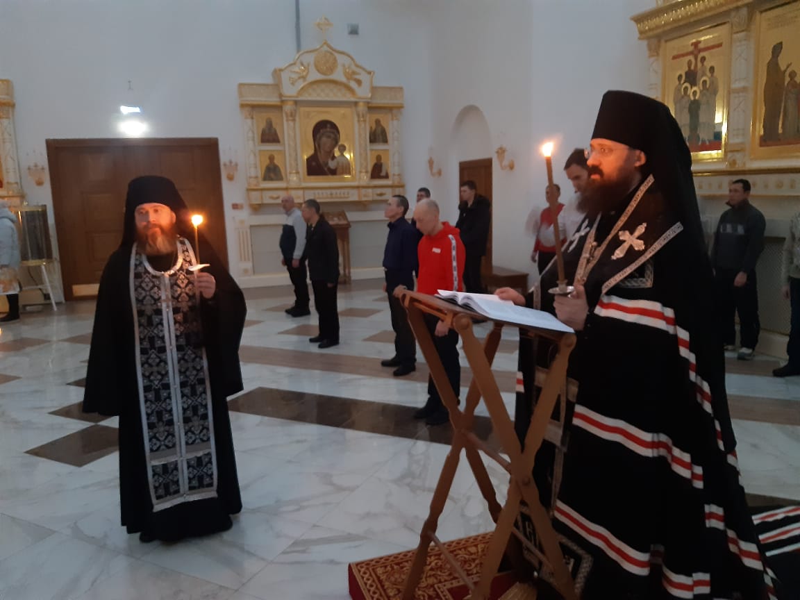 Вечером 28 февраля 2023 года, во вторник первой седмицы Великого поста, Преосвященнейший Агафангел, епископ Норильский и Туруханский, совершил великое повечерие с чтением Великого покаянного канона прп.