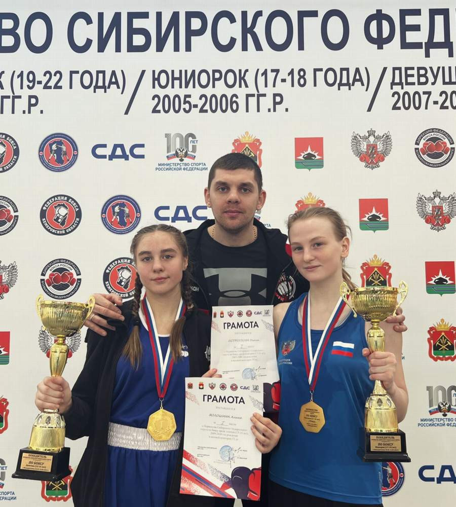 На первенстве Сибирского федерального округа по боксу Диана Остроухова и Алина Волошина в своих категориях заняли первые места и получили золотые медали.