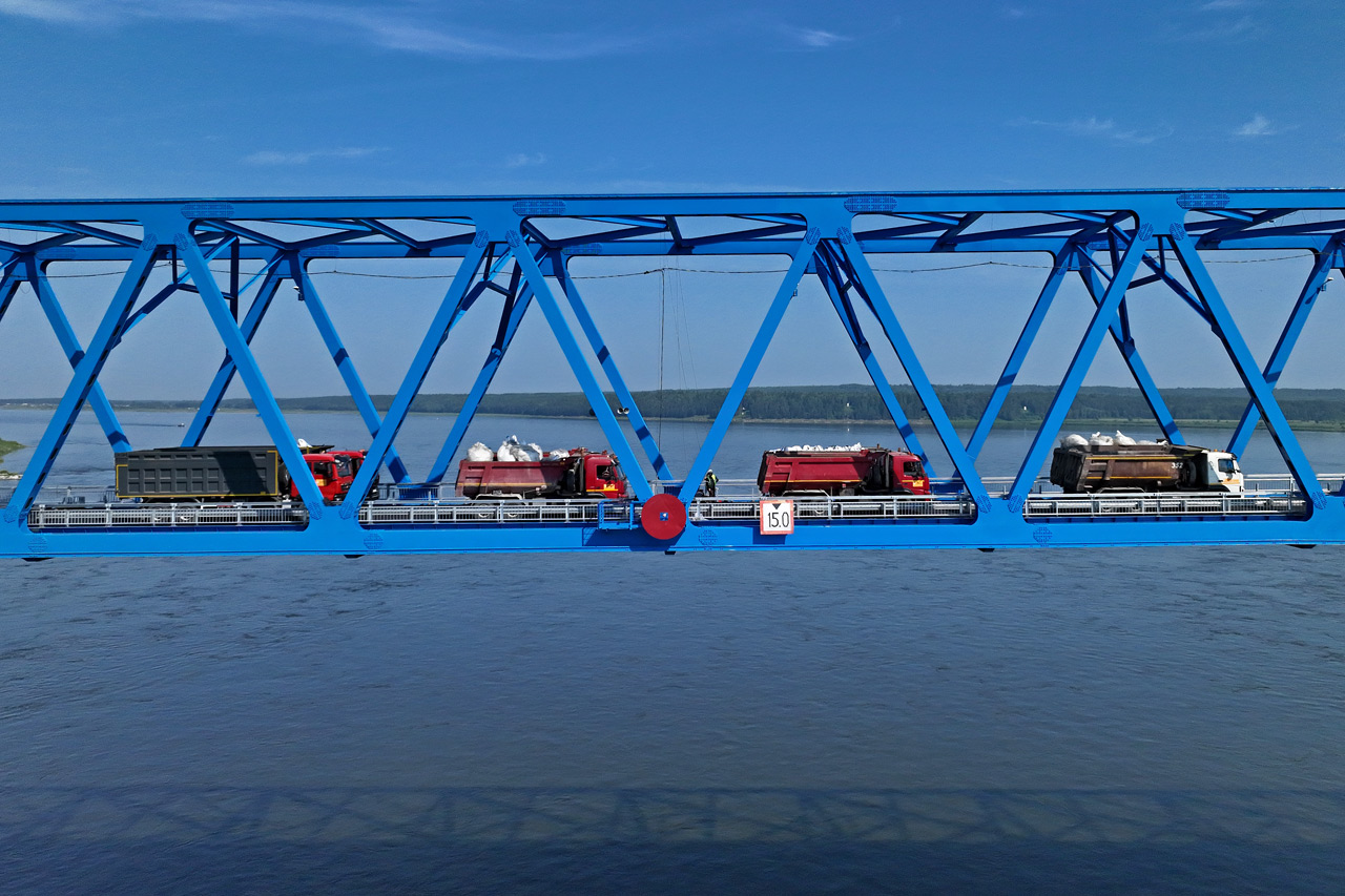 На самом северном мосту через Енисей под Лесосибирском в Красноярском крае завершились предпусковые нагрузочные испытания. Конструкции опор и пролетов, как и весь объект целиком, проверяли большегрузами на готовность к сдаче в эксплуатацию.