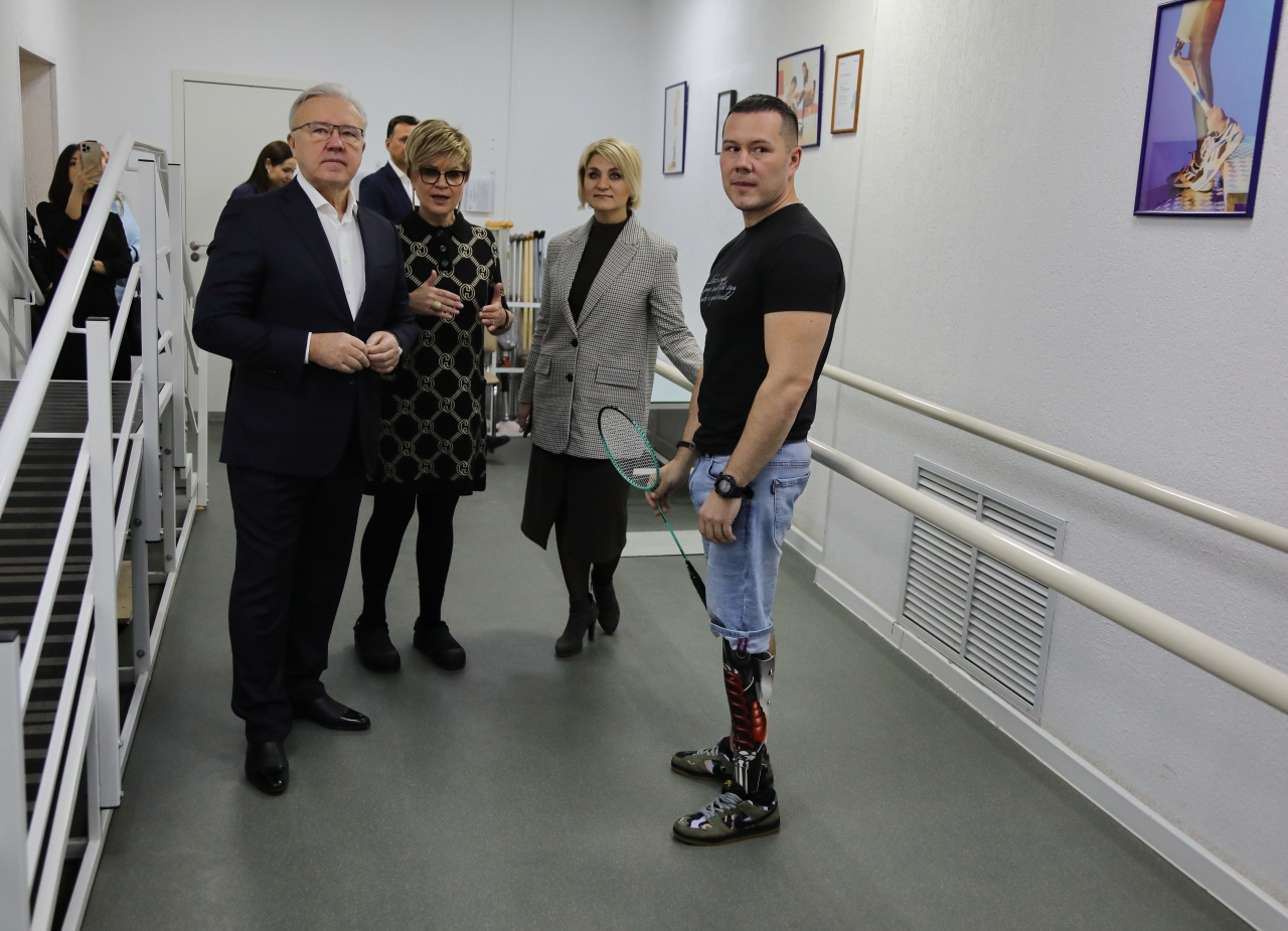 У пациента центра Вадима Ильина губернатор Александр Усс узнал, как проходит реабилитация? Вадим получил в зоне боевых действий ранение – потерял ногу. Он обратился за помощью к специалистам ортопедического центра.