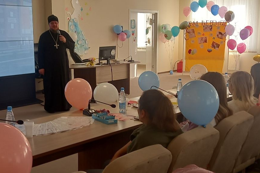 Отец Виталий провёл лекцию о ценности семьи и материнства, благословил будущих мам и подарил им иконки и молитвенники.