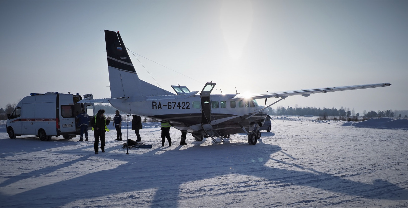 Санитарные рейсы выполняются на воздушных судах авиакомпаний: «АэроГео», «ЮТэйр», Национальной службы санитарной авиации и «Норильск Авиа».